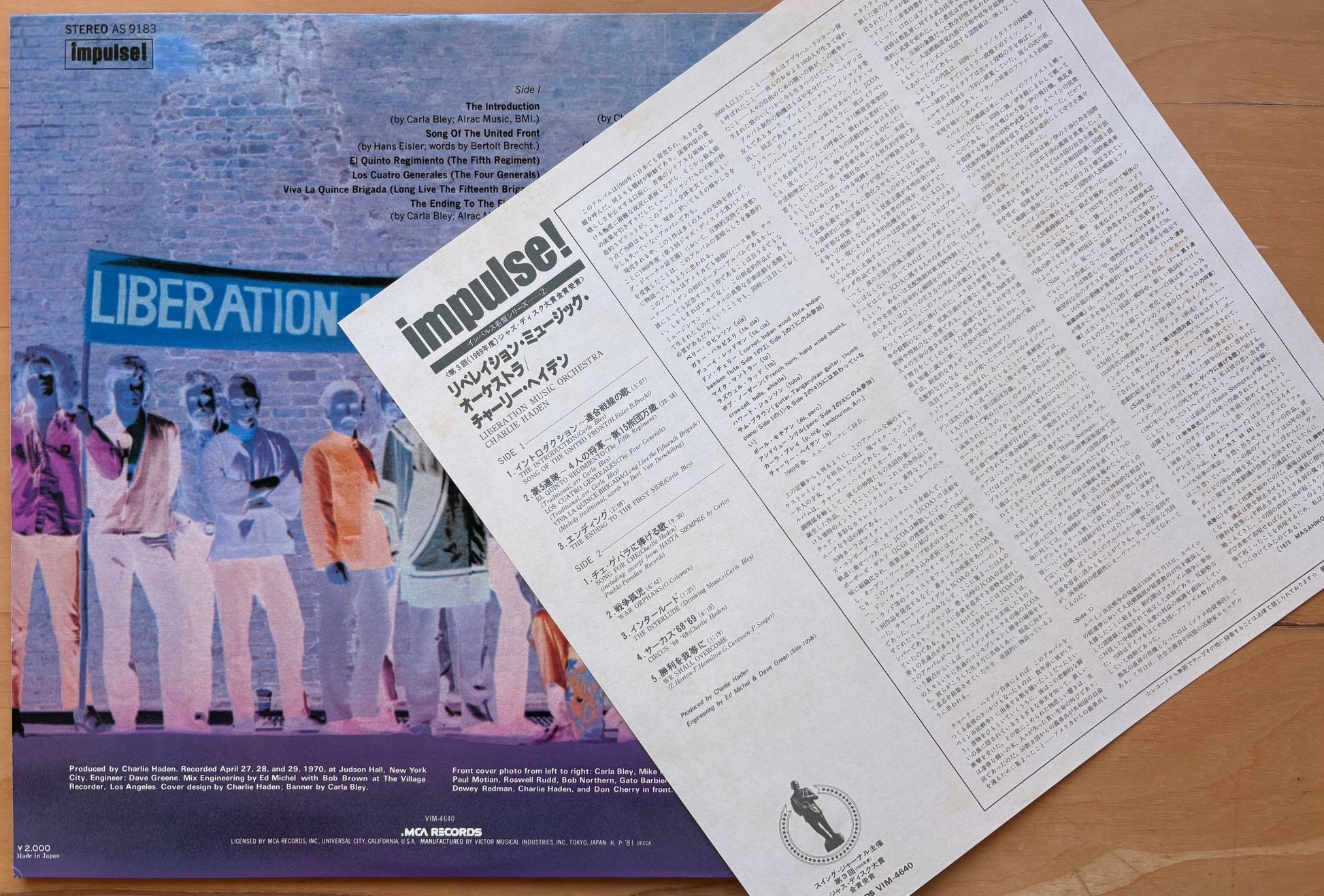 CHARLIE HADEN: "Liberation Music Orchestra" (Impulse/ MCA Records - VIM-4640) - Record: Near Mint/ Gatefold Jacket: Near Mint/ Insert: Near Mint/ Obi: Near Mint