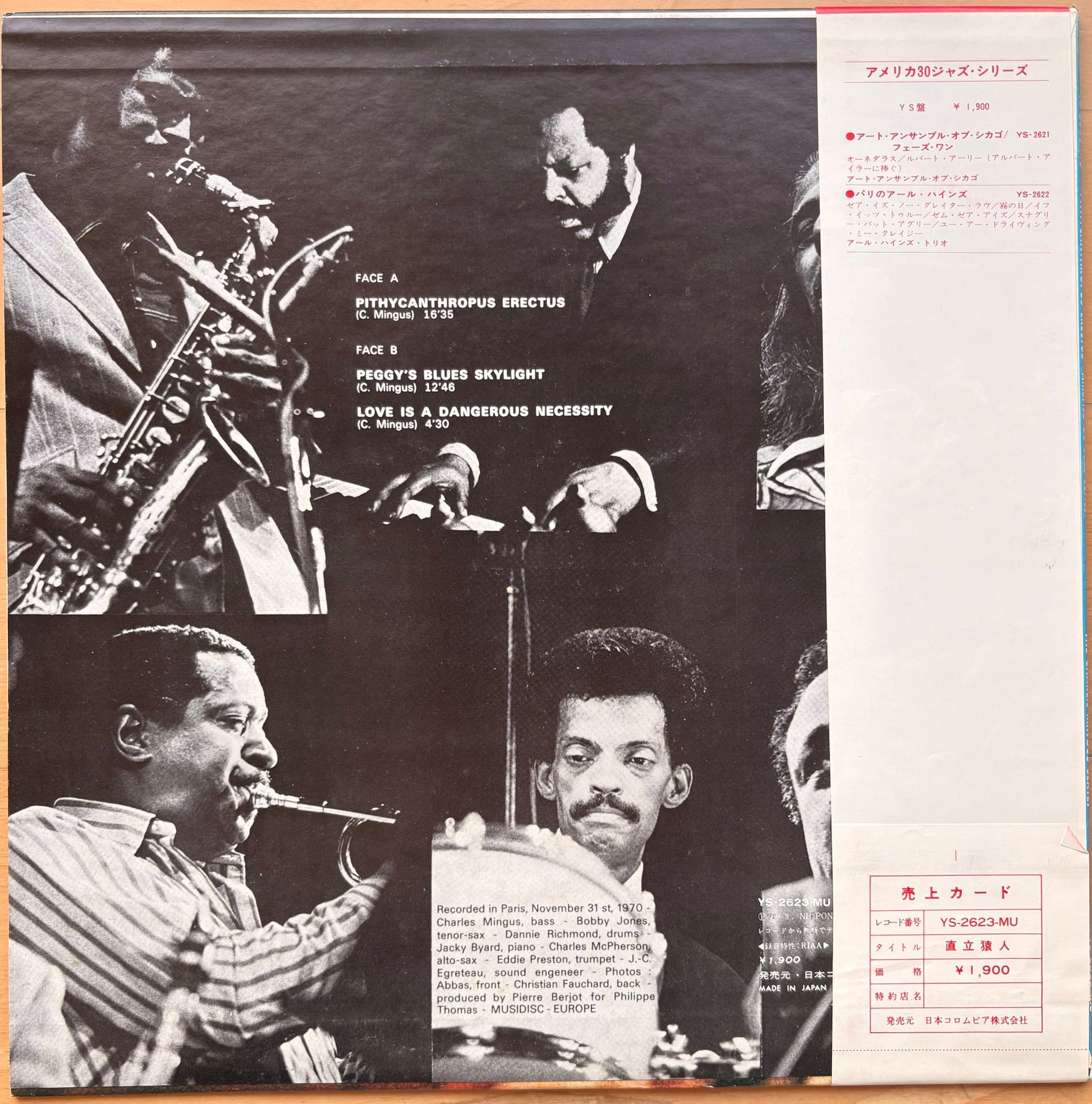 CHARLIE MINGUS: "Pithecanthropus Erectus" (Columbia - YS-2623-MU) Record: Near Mint/ Jacket: Near Mint/ Insert: Near Mint/ Obi: Near Mint