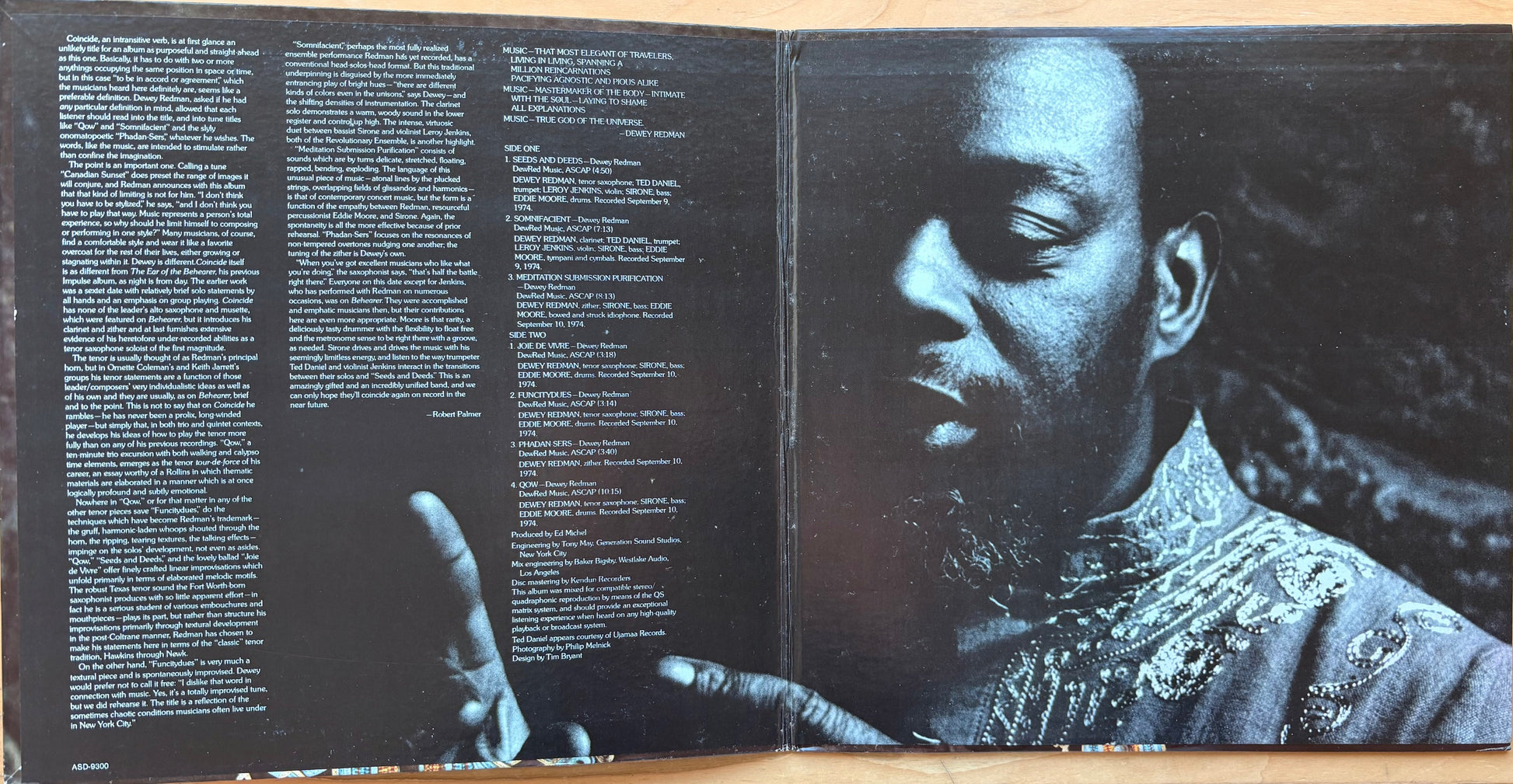 DEWEY REDMAN: "Coincide" (Impulse/ ABC Records - ASD-9300) ----- Record: Excellent/ Gatefold jacket: Near Mint/ Company Inner Sleeve: Excellent