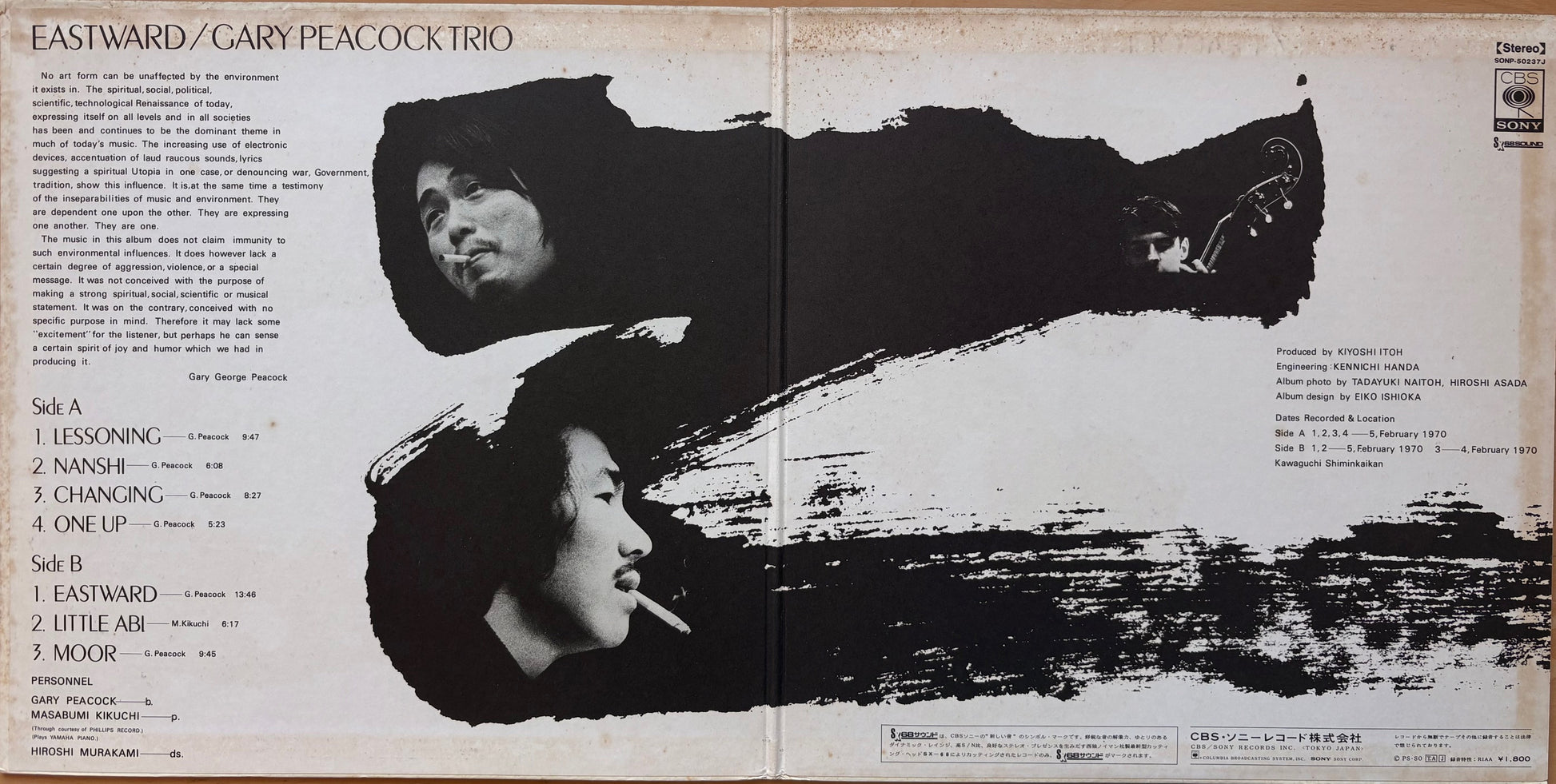 GARY PEACOCK TRIO: "Eastward" (CBS Sony - SONP-50237J) ----- Record: Near Mint/ gatefold jacket: VG++ - has visible foxing inside gatefold and faintly on front sleeve/ Obi: Excellent ~ Near Mint