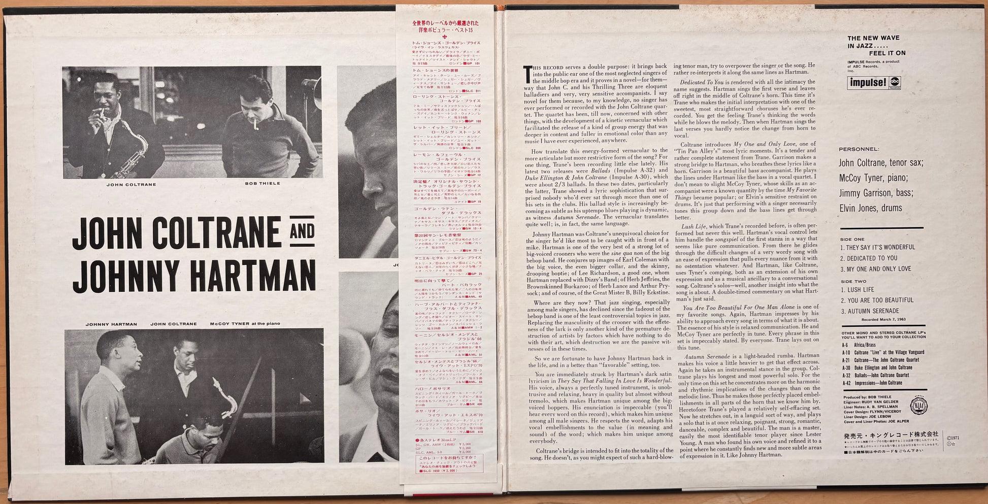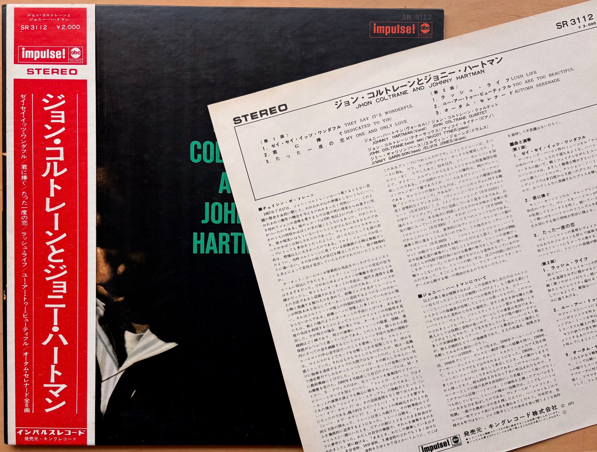JOHN COLTRANE And JOHNNY HARTMAN: "S/T" (Impulse - SR-3112) Record: Near Mint/ Gatefold Jacket: Excellent - some faint foxing inside gatefold/ Insert: Near Mint/ Obi: Near Mint
