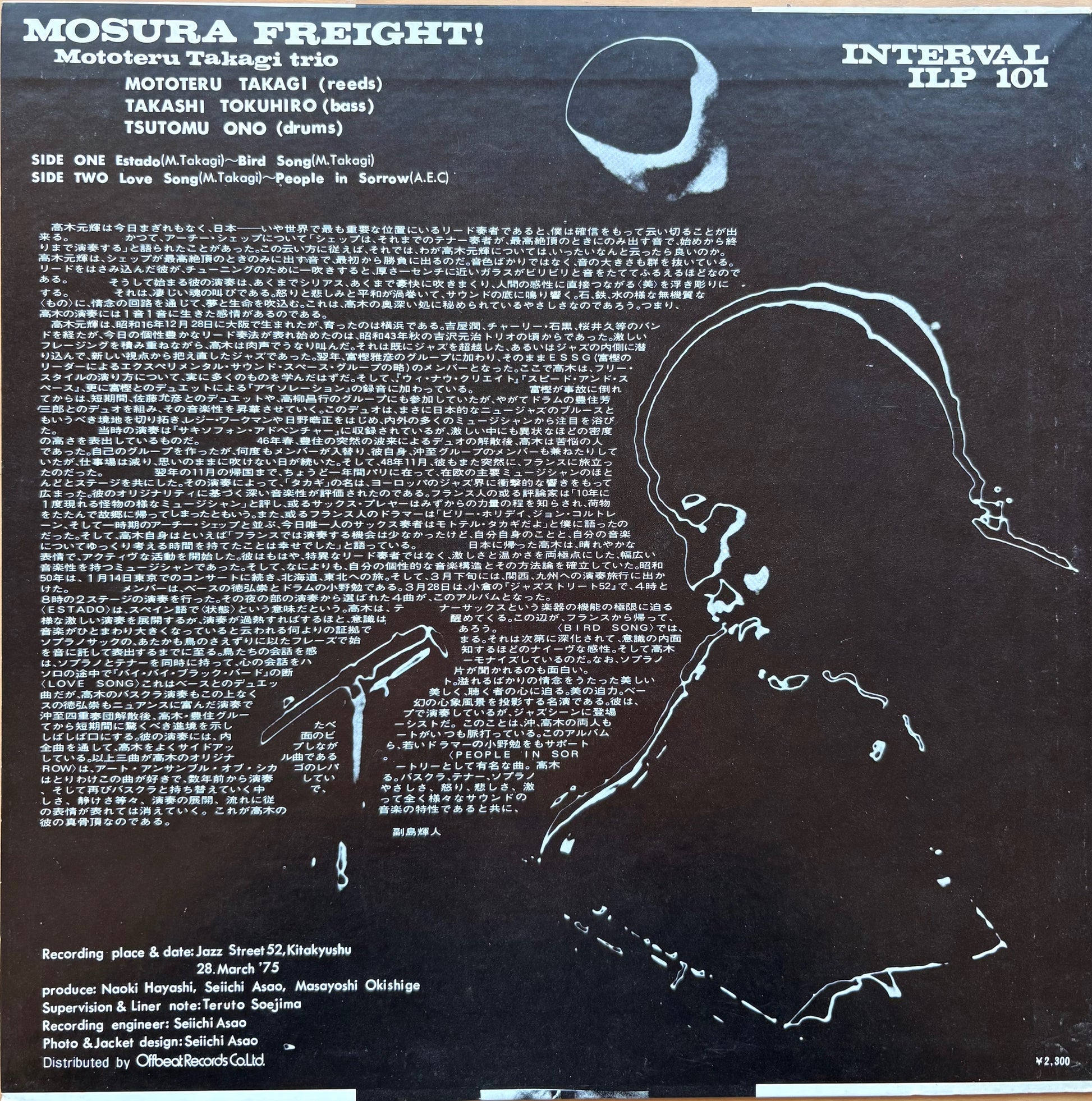 TAKAGI MOTOTERU TRIO: "Mosura Freight" (Interval - ILP-101) (Record: Near Mint/ Jacket: Excellent ~ Near Mint - just perfect with only the faintest trace of foxing barely visible.