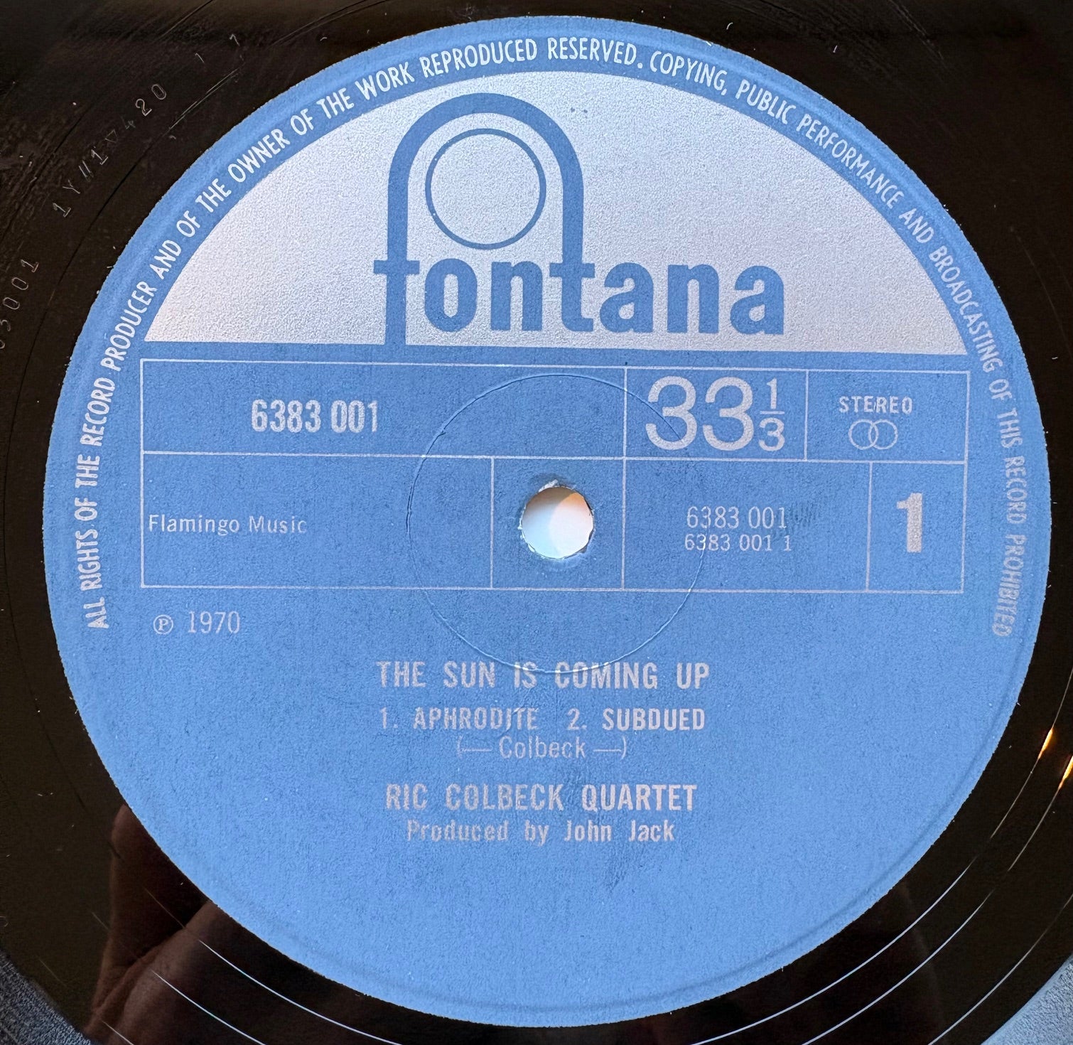 THE RIC COLBECK TRIO: "The Sun Is Coming Up" (Fontana - 6383.001) ----- Record: Near Mint/ Laminated Jacket: Near Mint